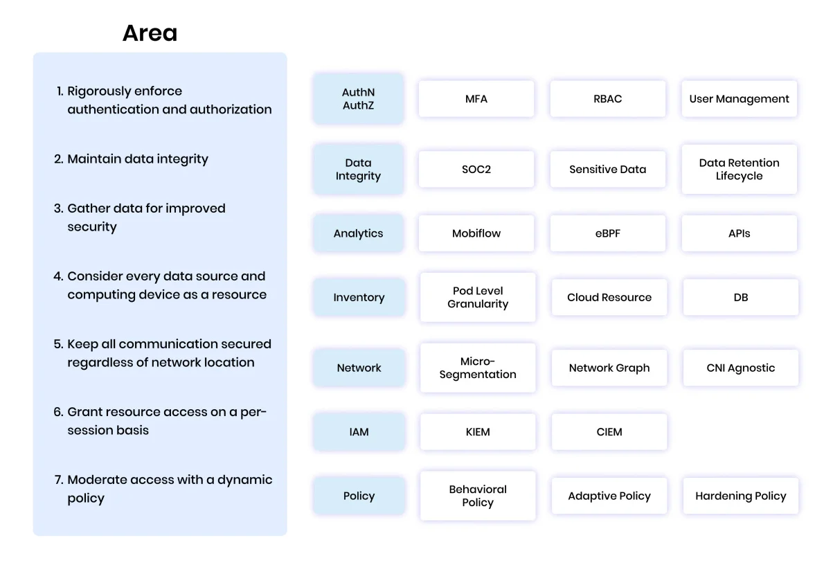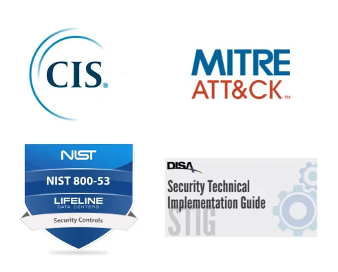 - Zero Trust Maturity Model – Ensure compliance with attack frameworks (MITRE TTP, NIST, DISA-STIG, CIS) through recommended hardening policies.